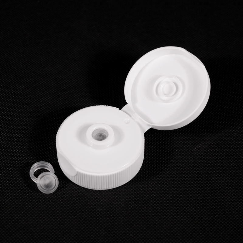 ฝาปิดขวดพลาสติก PP สีขาวแบบมีซี่โครง ขนาด 38/400 พร้อมฝาปิดแบบพลิก
