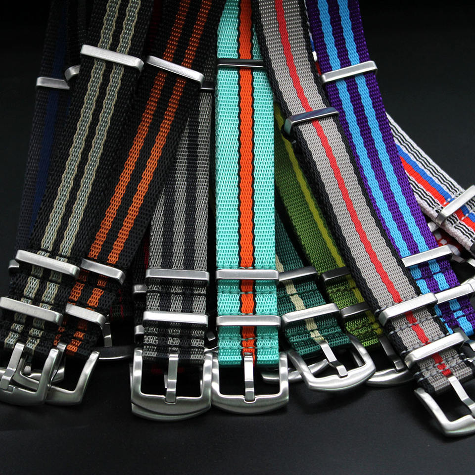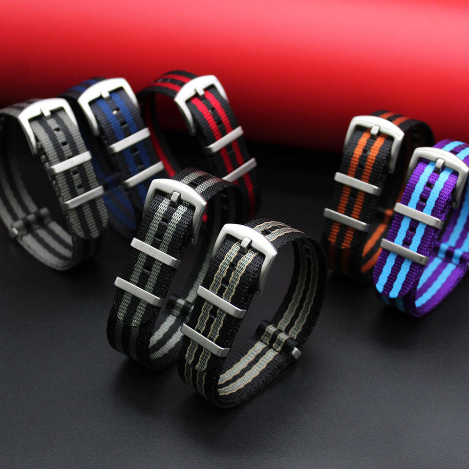 สายนาฬิกาไนลอนเกรดสูง18มม. 20มม. 22มม. 38สี,สายรัดไนลอนสายสำหรับนาฬิกา Herringbone James Bond
