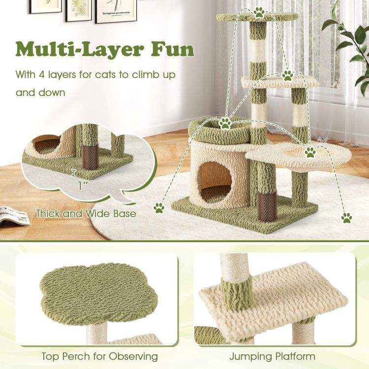 ต้นไม้แมวแบบหลายระดับสูง 38 นิ้ว พร้อมคอนโดและเตียง สวยงามเหมือนต้นไม้จริง พร้อมที่ลับเล็บ