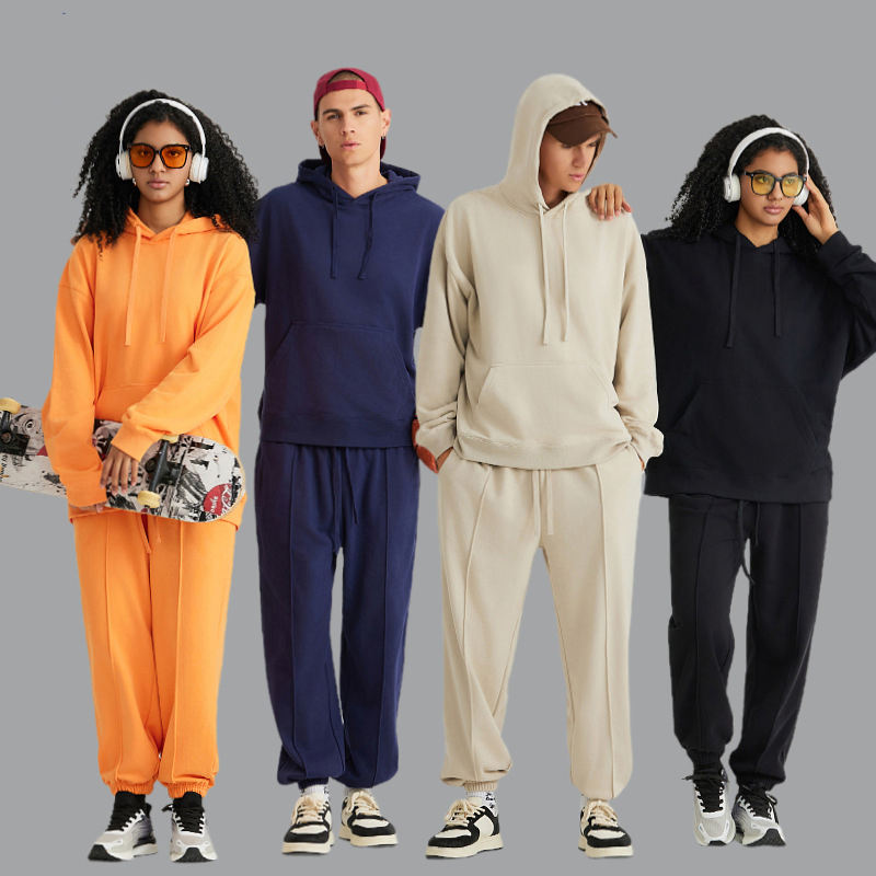 เสื้อมีฮู้ดโอเวอร์ไซส์ไซส์380 GSM สำหรับทุกเพศขนาดพลัสไซส์ออกแบบโลโก้ฤดูใบไม้ร่วงสีทึบ