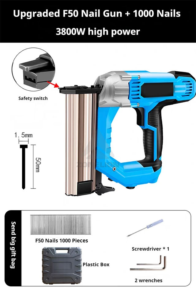 ปืนยิงเล็บไฟฟ้าแบบ DIY 3800วัตต์ก้านเหล็กเรียบเล็บทั่วไปปืนยิงตะปูโลหะ St18 St15แบบอเนกประสงค์หัวกลมแบน