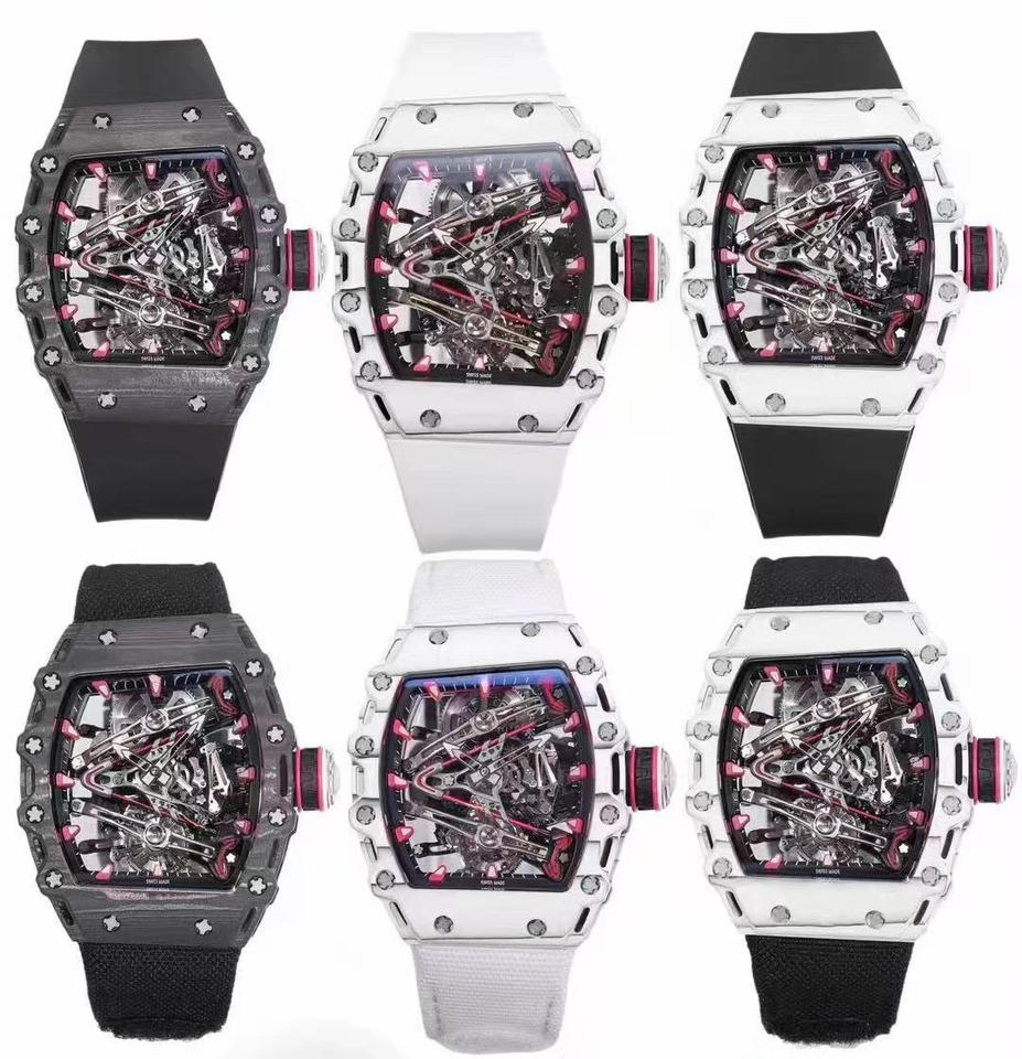 นาฬิกาอัตโนมัติคุณภาพสูง 3802 Tourbillon ตัวเรือนคาร์บอนไฟเบอร์ สายยางแบบโปร่ง ดีไซน์หรูหรา สปอร์ต