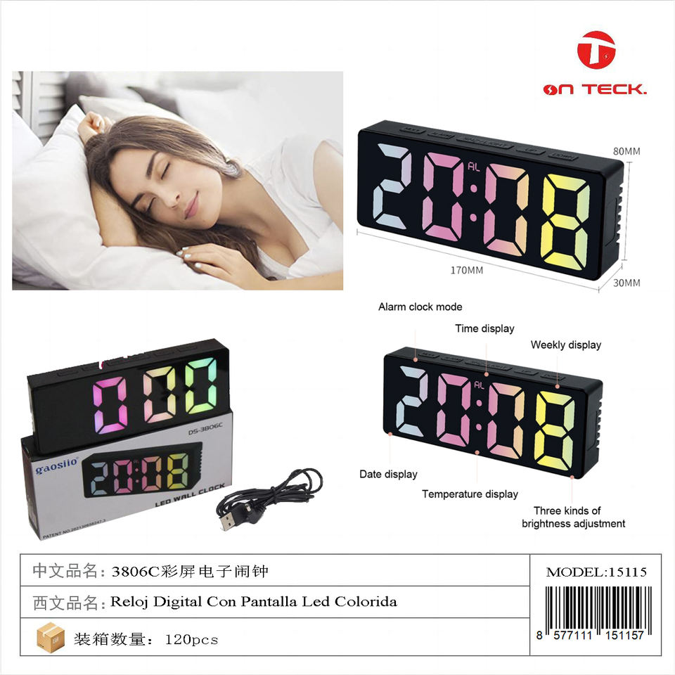 หน้าจอสี3806C นาฬิกาดิจิตอลสำหรับตกแต่งบ้านไฟ LED นาฬิกาปลุกตั้งโชว์เวลากลางคืนห้องนอนสมัยใหม่15115