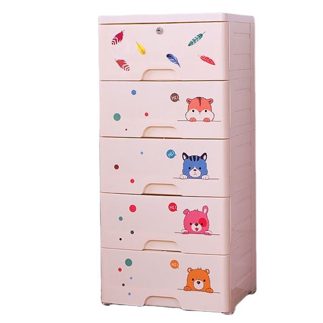Product name:38cm 5-tier clothes storage plastic cupboard with cartoon stickers