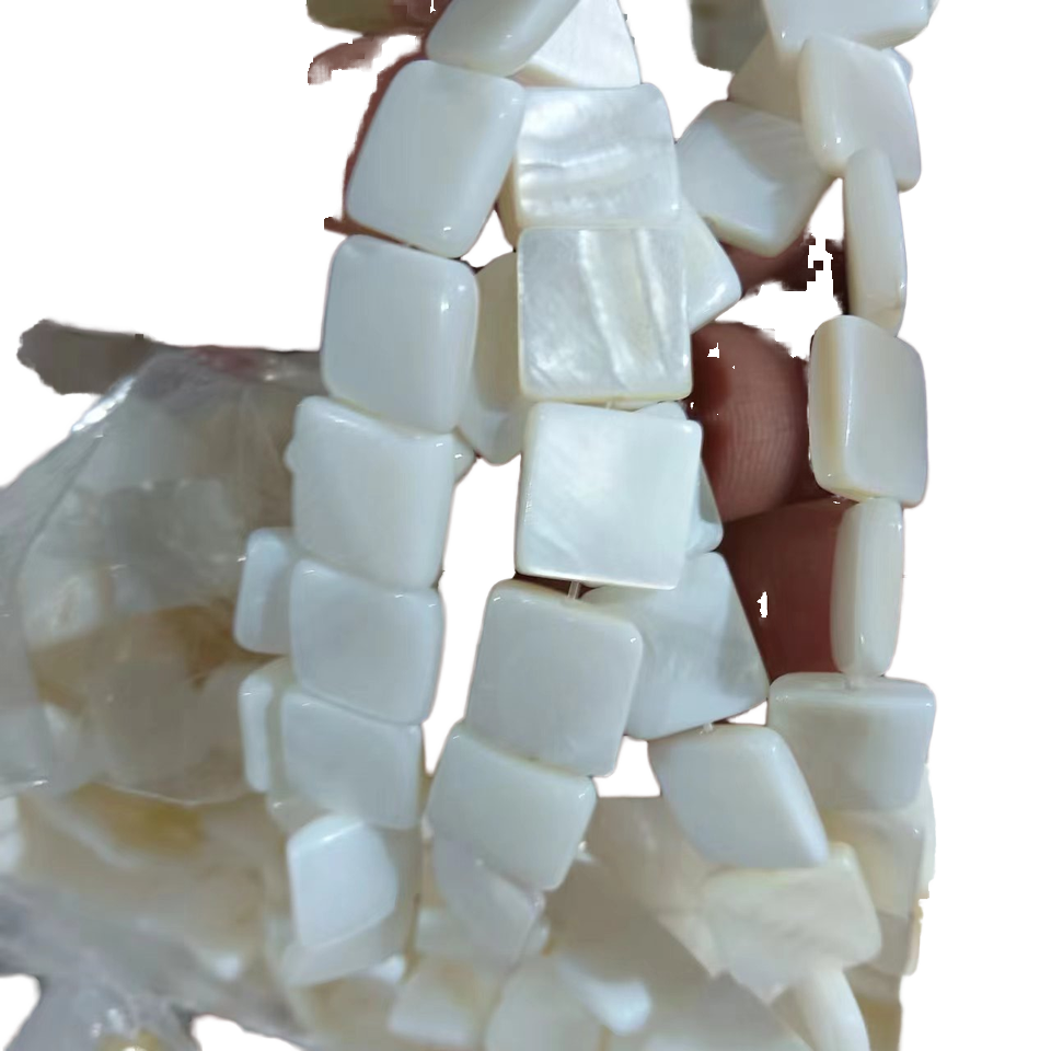 ลูกปัดเปลือกหอยสีขาวธรรมชาติทรงสี่เหลี่ยมขนาด 10 มม. ความยาว 38 ซม. จำนวน 38 เม็ด สำหรับทำเครื่องประดับ DIY สร้อยข้อมือ