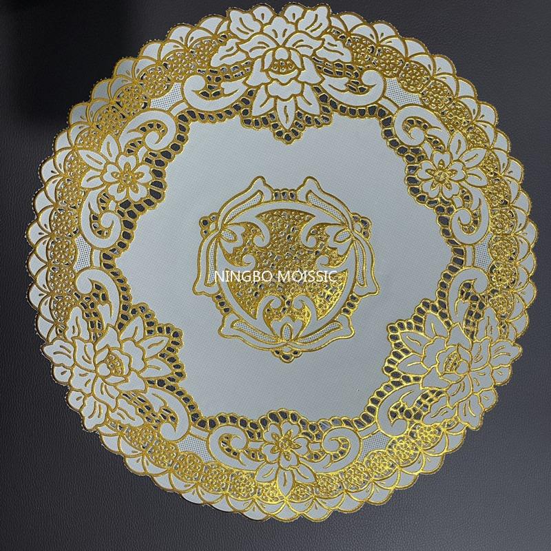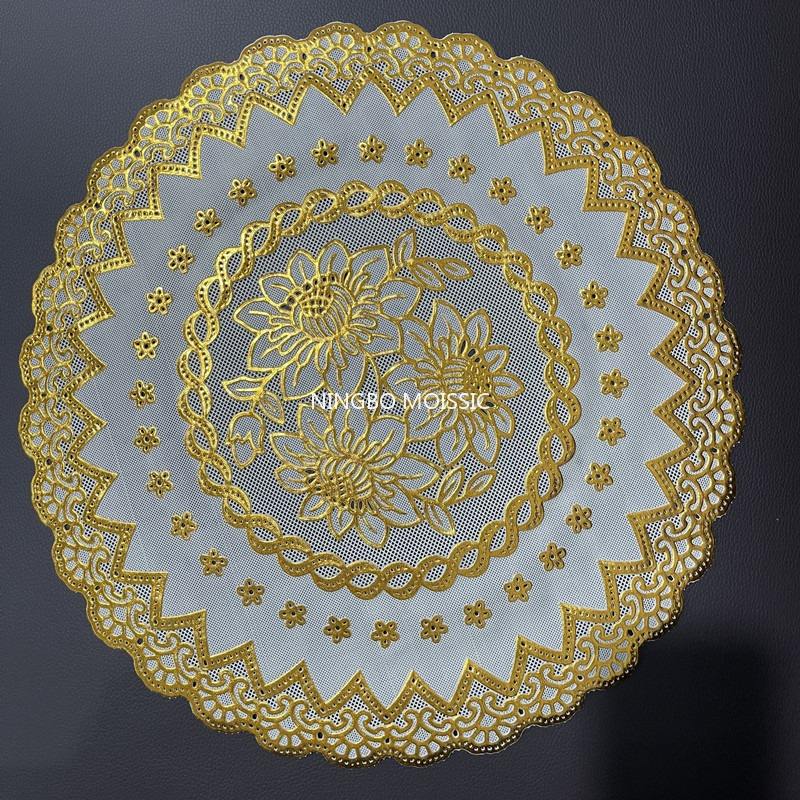 แผ่นรองจานทรงกลมลายดอกไม้สีทองเมทัลลิก ขนาด 38 ซม. รุ่น TM-A003 ทำจากยาง คลาสสิค เป็นมิตรกับสิ่งแวดล้อม