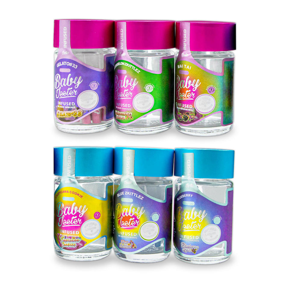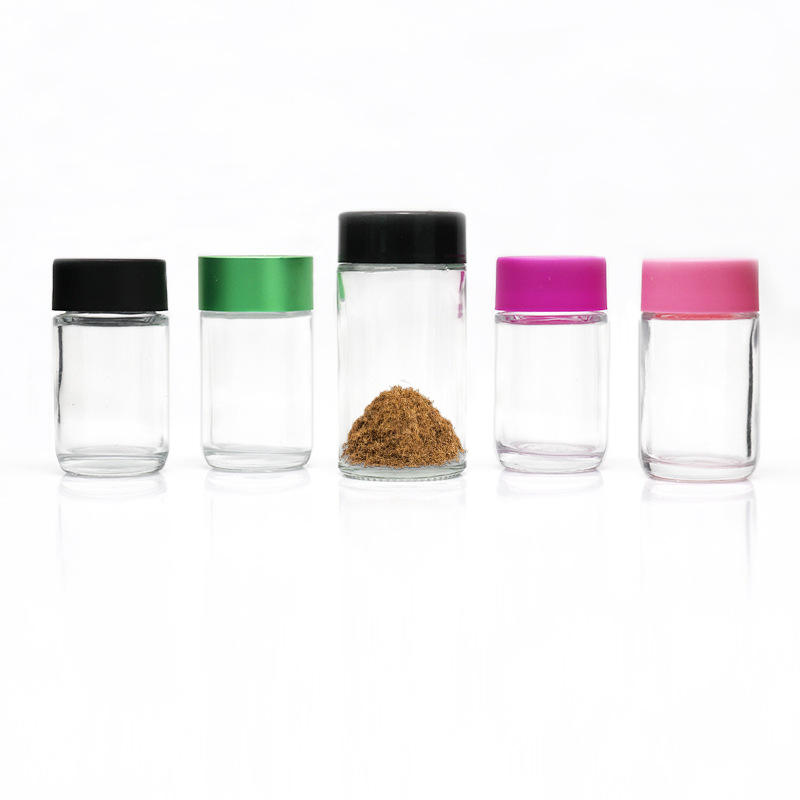 ขวดแก้วทรงตรงขนาด 38 มล. ป้องกันเด็กเปิดได้ ฝาอะลูมิเนียมเคลือบไฟฟ้า ลายดอกไม้ป่าน พิมพ์โลโก้ด้วยผ้าไหม รุ่น GS-A040