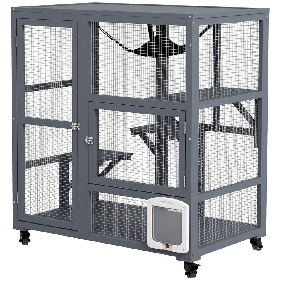 บ้านแมวสีน้ำตาล 39 ตัว แบบมีล้อเคลื่อนย้ายได้ พร้อมหลังคาเปิดได้ บ้านและเฟอร์นิเจอร์สำหรับสัตว์เลี้ยง