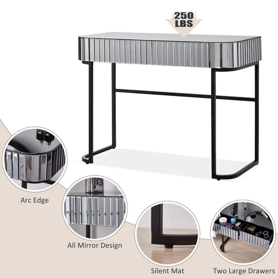 โต๊ะเครื่องแป้งกระจกแต่งหน้าอเนกประสงค์สีเทา39 "พร้อมฐานสแตนเลสและลิ้นชัก2อันสำหรับห้องนอนสำนักงานหรือโต๊ะทำงาน