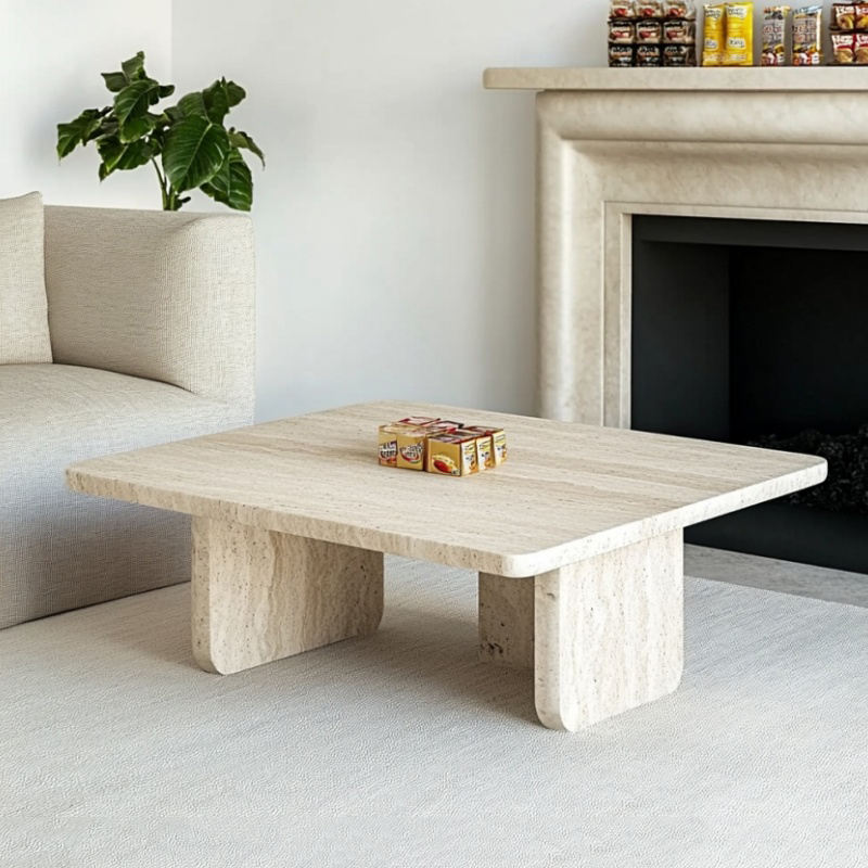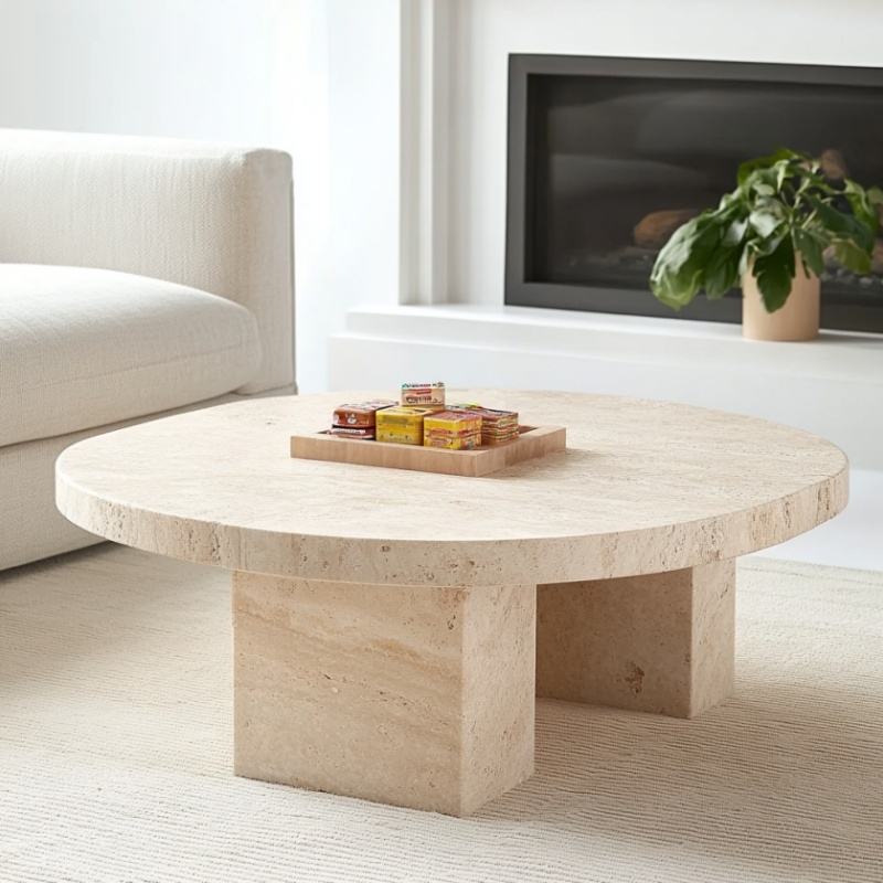 ห้องนั่งเล่นสไตล์ยุโรปสมัยใหม่ตกแต่งโต๊ะรับประทานอาหารหินธรรมชาติโต๊ะกาแฟหินอ่อนสีเบจ