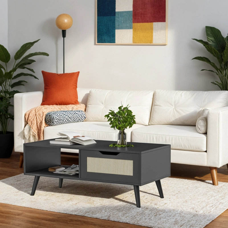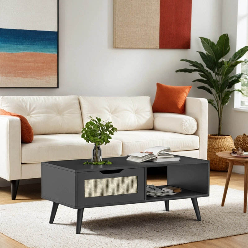 โต๊ะกาแฟหวายสไตล์โบฮีเมียน39 ", ชั้นวางของในฟาร์มเฟอร์นิเจอร์ห้องนั่งเล่นเคลื่อนย้ายได้มีดีไซน์ที่เป็นเอกลักษณ์