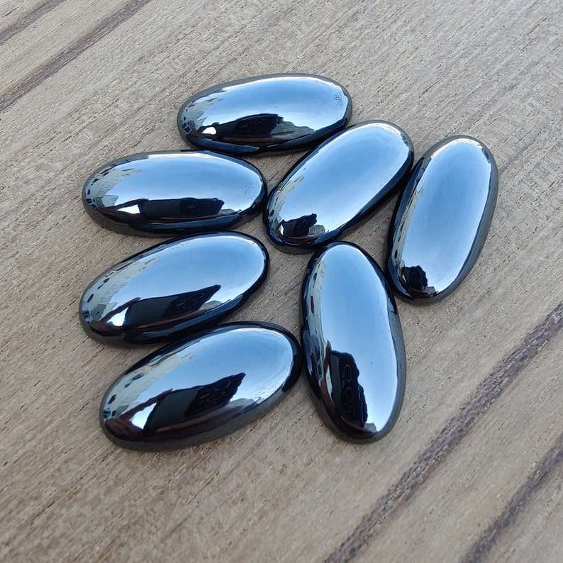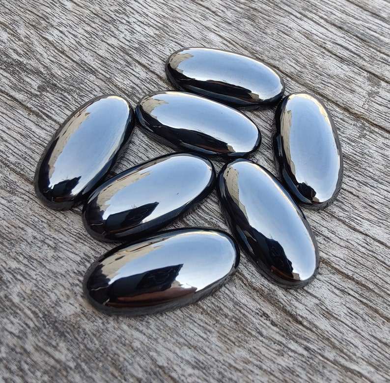 คุณภาพ 3A+ แท้ 100% หินเฮมาไทต์ 100 ชิ้น รูปทรงผสม คาโบชอง ด้านหลังแบน ขนาดปรับเทียบแล้ว ทรงเหลี่ยมเจียระไนแบบแคทอาย สีดำ