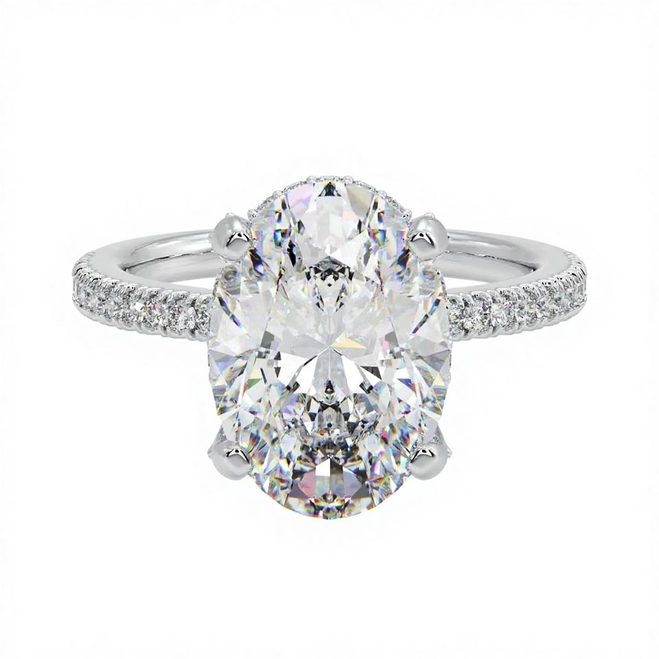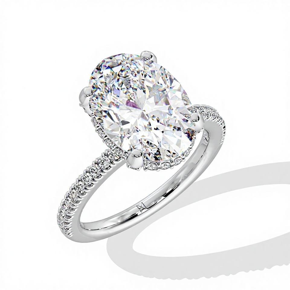 3CT Oval Cut Lab-Created Diamond Hidden Halo Engagement Ring Solitaire 925 Silver Gold White Rose for Anniversary Wedding Gift