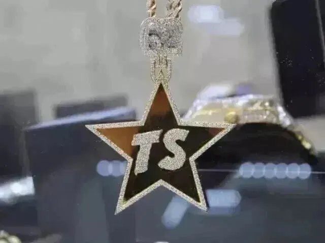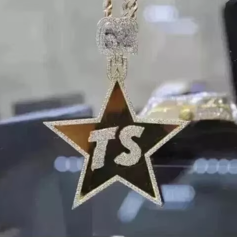 จี้เพชรโมอิสซาไนต์ทรงกลม 3 กะรัต ชื่อสั่งทำพิเศษสำหรับผู้ชาย ชุบทองคำขาว 14K
