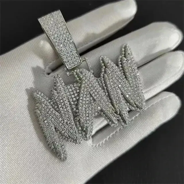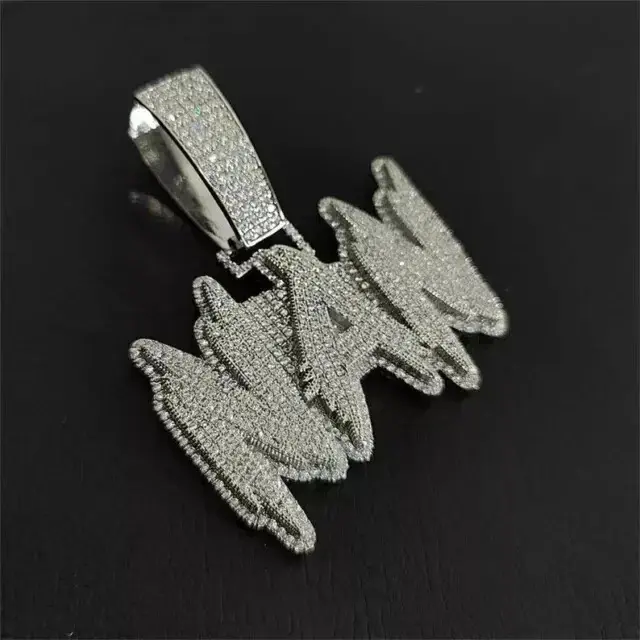 จี้เพชรโมอิสซาไนต์ทรงกลม 3 กะรัต ชื่อสั่งทำได้ สำหรับผู้ชาย ชุบทองคำขาว 14K
