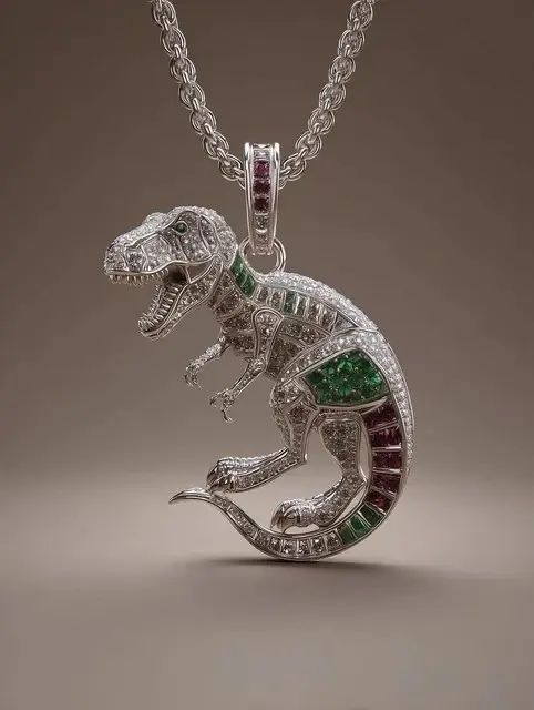 จี้ไดโนเสาร์ประดับโมอิสซาไนต์แท้ทรงกลม 3 กะรัต ชุบทอง 14K เงินแท้สำหรับผู้หญิง ประดับเพชรทิชยา