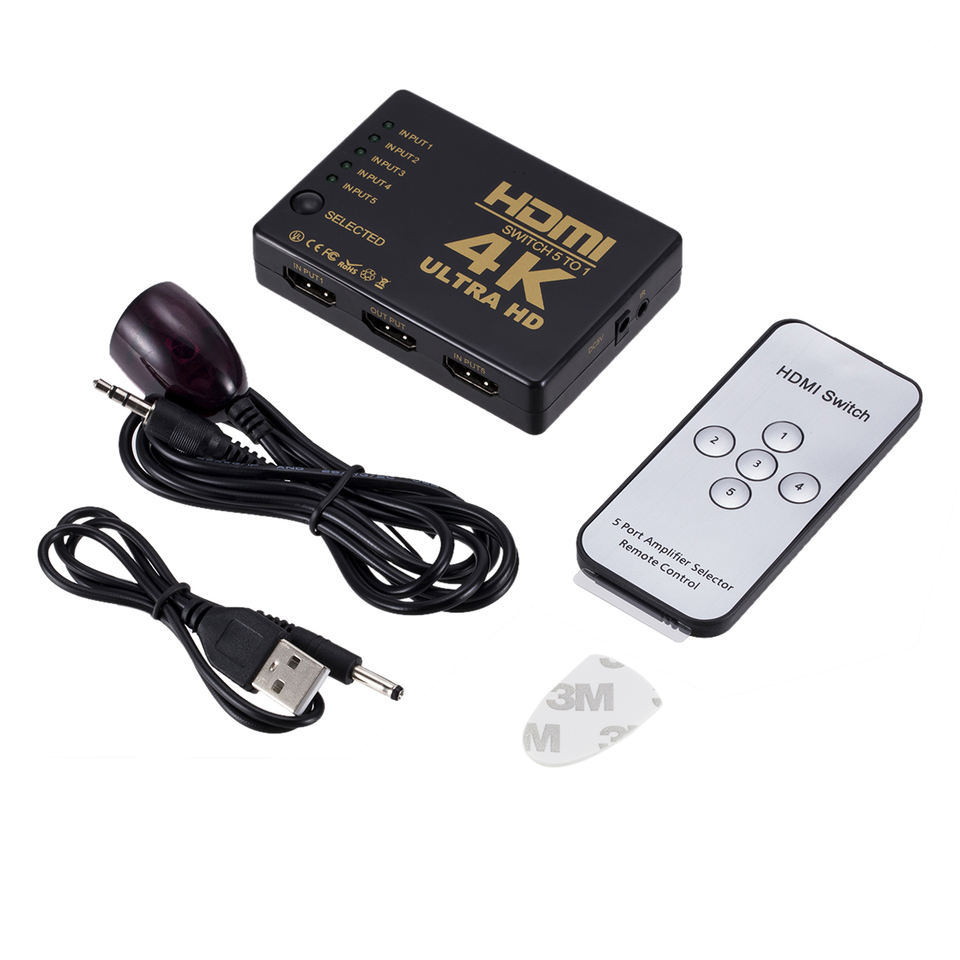 3D 4K HDMI พร้อมรีโมทคอนโทรล5X1 MINI HDMI Splitter พอร์ต5พอร์ตสวิทช์อัตโนมัติ5อินพุต1เอาต์พุตตัวสลับ HDMI