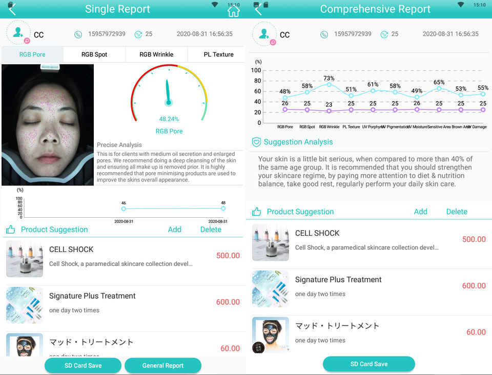 เครื่องวิเคราะห์ผิว 3 มิติ AI รองรับ 16 ภาษา พร้อมการวิเคราะห์ 7 สี สำหรับผิวและผลิตภัณฑ์ดูแลความงามส่วนบุคคล