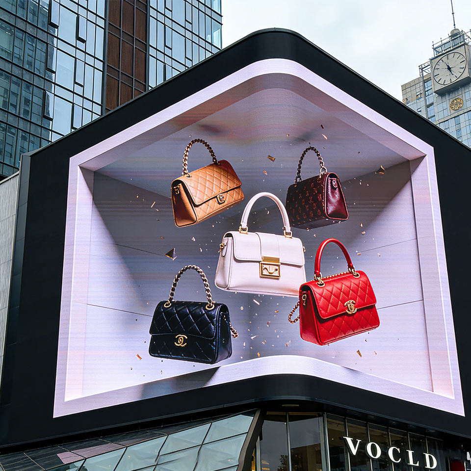 จอแสดงผล LED โค้ง 3 มิติ สำหรับภายนอกอาคาร ป้ายโฆษณาแบบมองเห็นได้ด้วยตาเปล่า