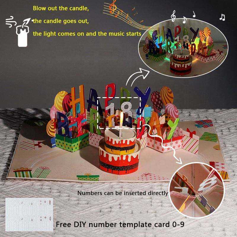การ์ดวันเกิด3D การ์ดอวยพรวันเกิดแบบป๊อปอัพ3D เค้กพร้อมไฟและเสียงการ์ดอวยพรวันเกิดสุดสร้างสรรค์