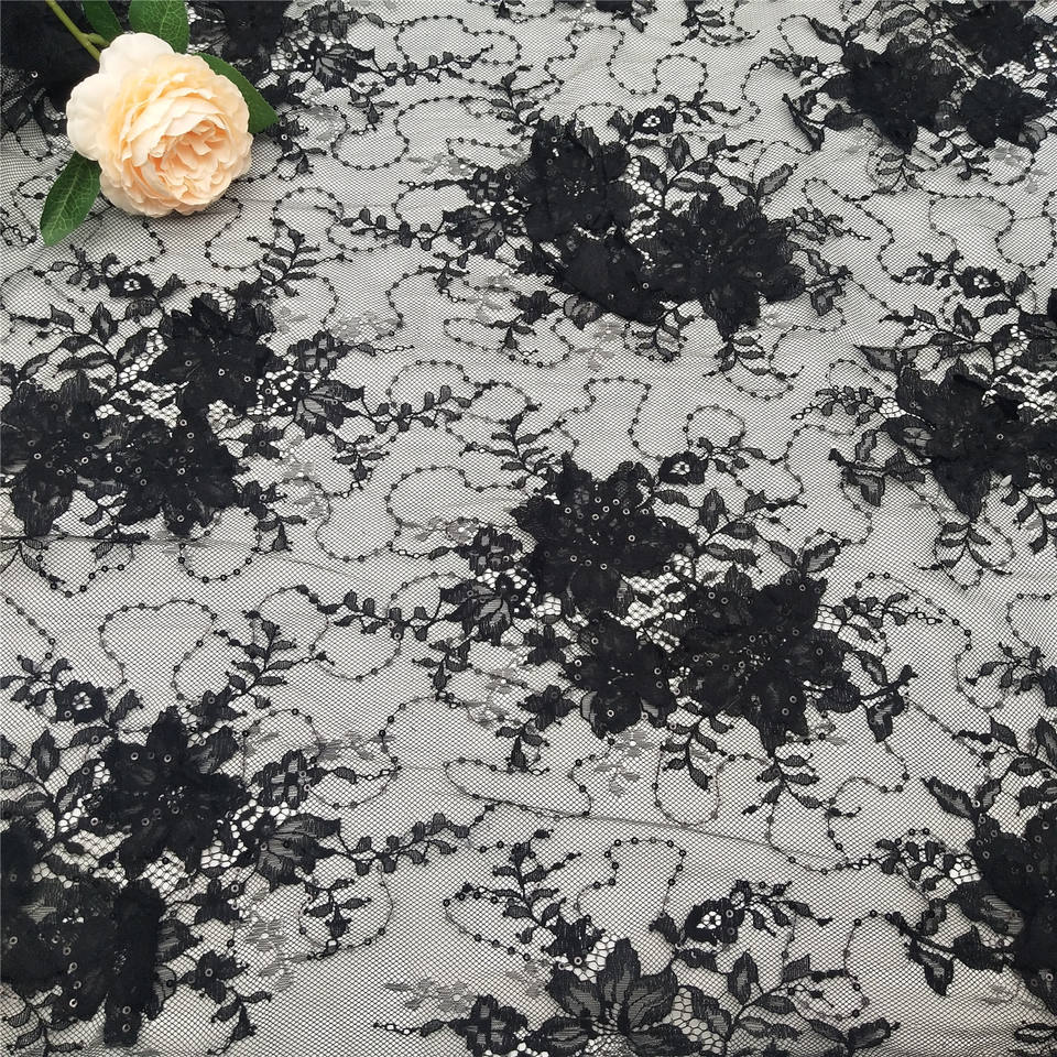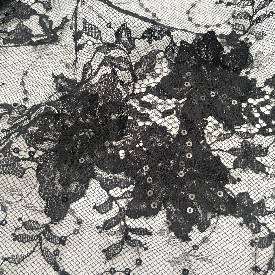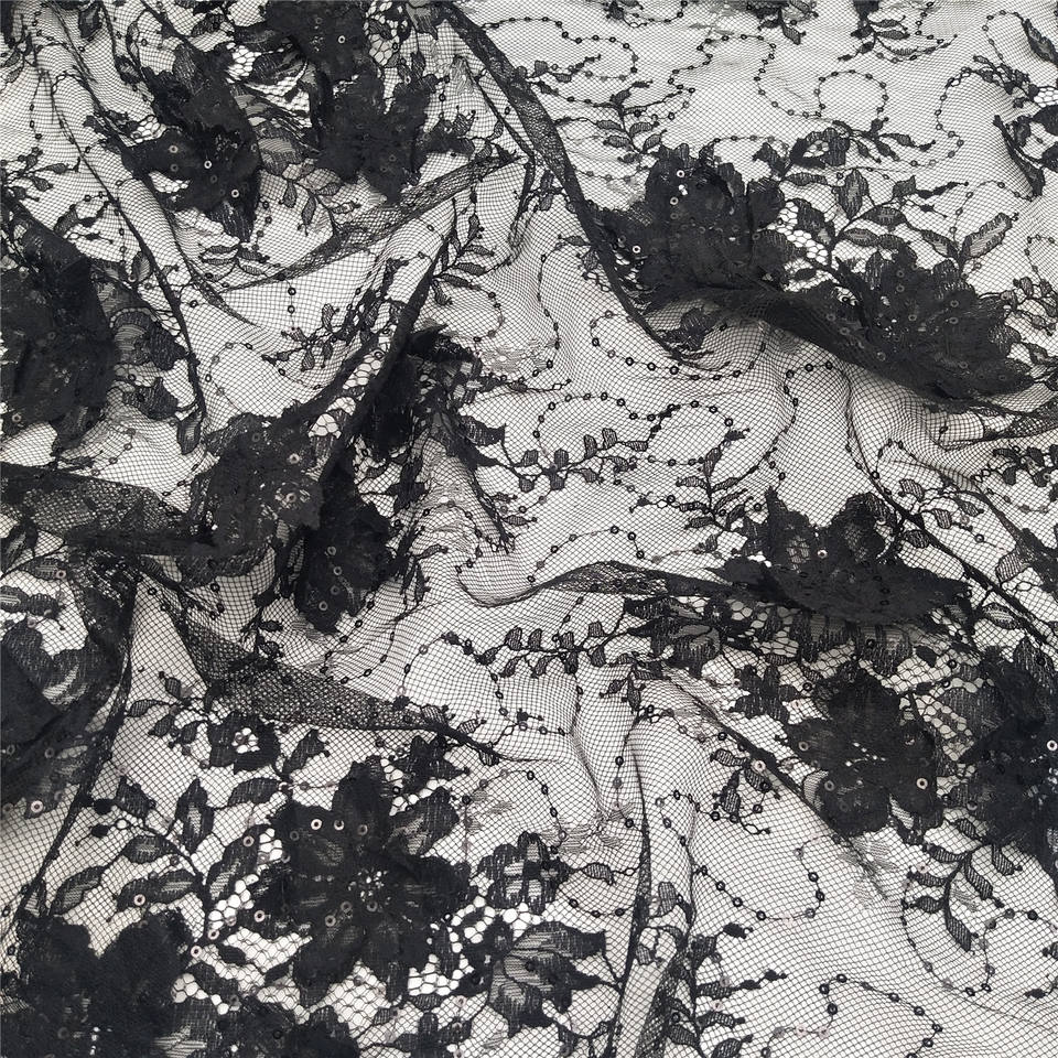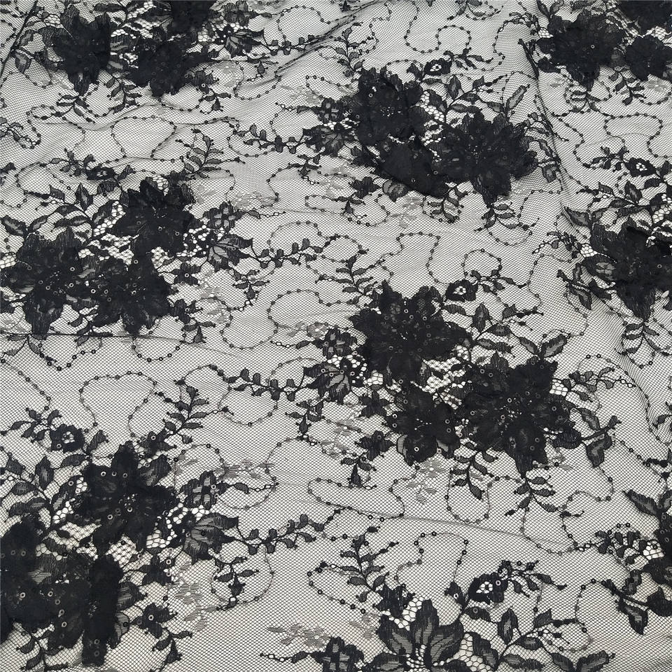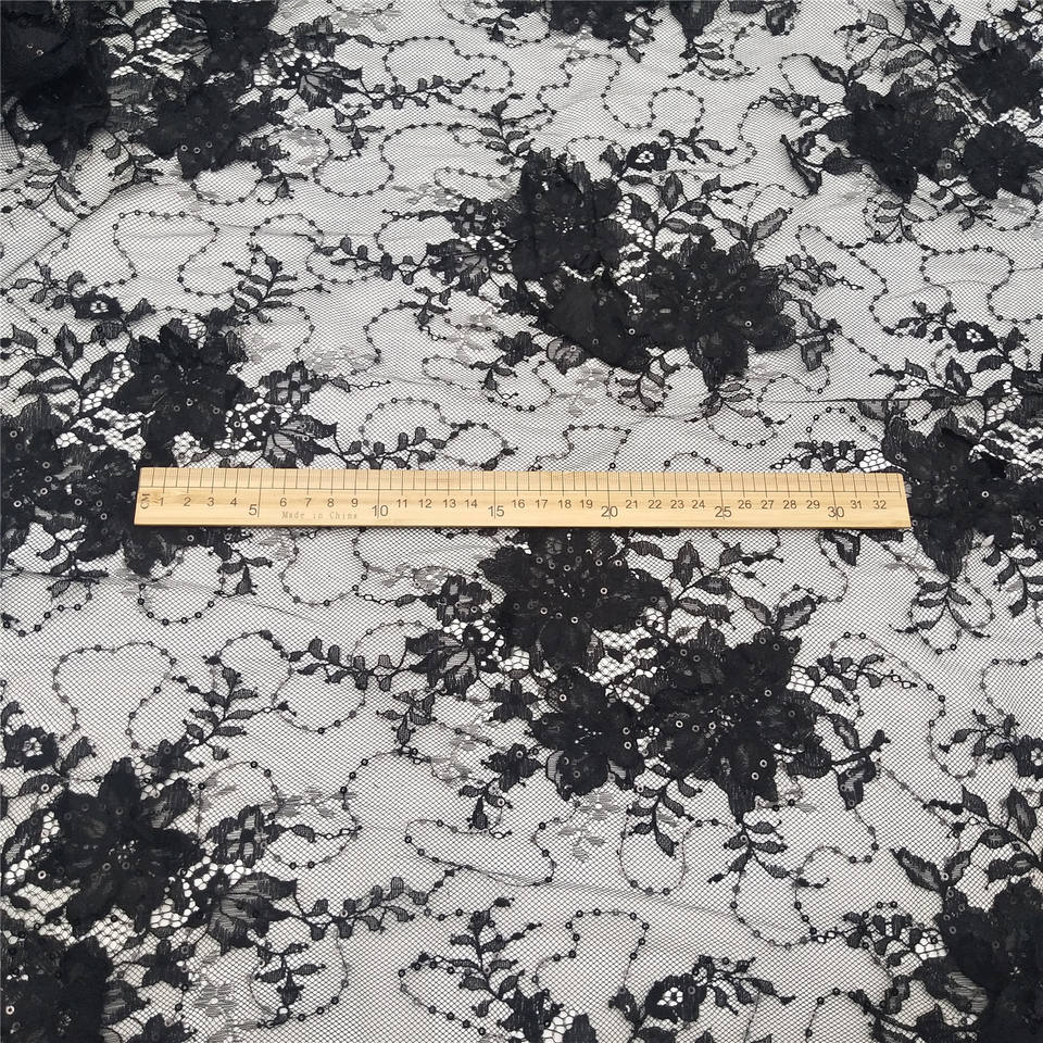 ผ้าลูกไม้ฝรั่งเศสถักลายดอกไม้ประดับเลื่อมสีดำแบบ 3 มิติ สำหรับชุดเจ้าสาวและของตกแต่งบ้านสุดหรู