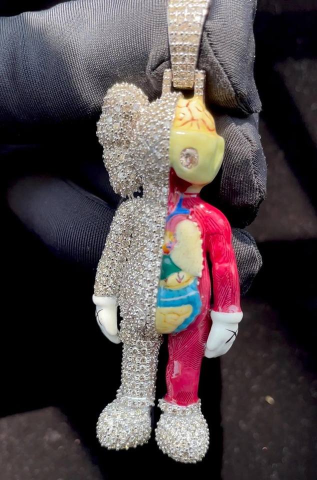 สร้อยคอเพชรทรงบริลเลียนต์คัต 3 มิติ ลายการ์ตูน ขนาดใหญ่ สั่งทำพิเศษ ตัวเรือนเงินแท้ชุบทองคำขาวและโรสโกลด์ สำหรับผู้ชาย หรูหรา ได้รับการรับรองจาก IGI