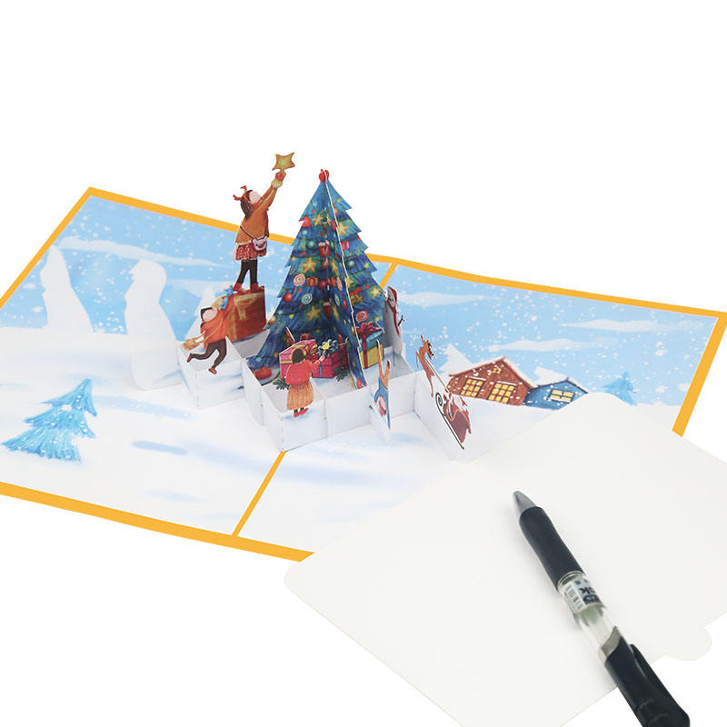 3D ต้นคริสต์มาสชุดกล่องเล็กกระดาษการ์ดอวยพรป๊อปอัพพร้อมซองของขวัญคริสต์มาสสำหรับเพื่อนและครอบครัว