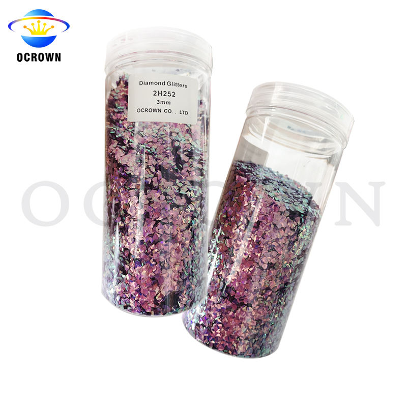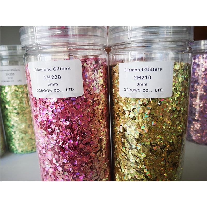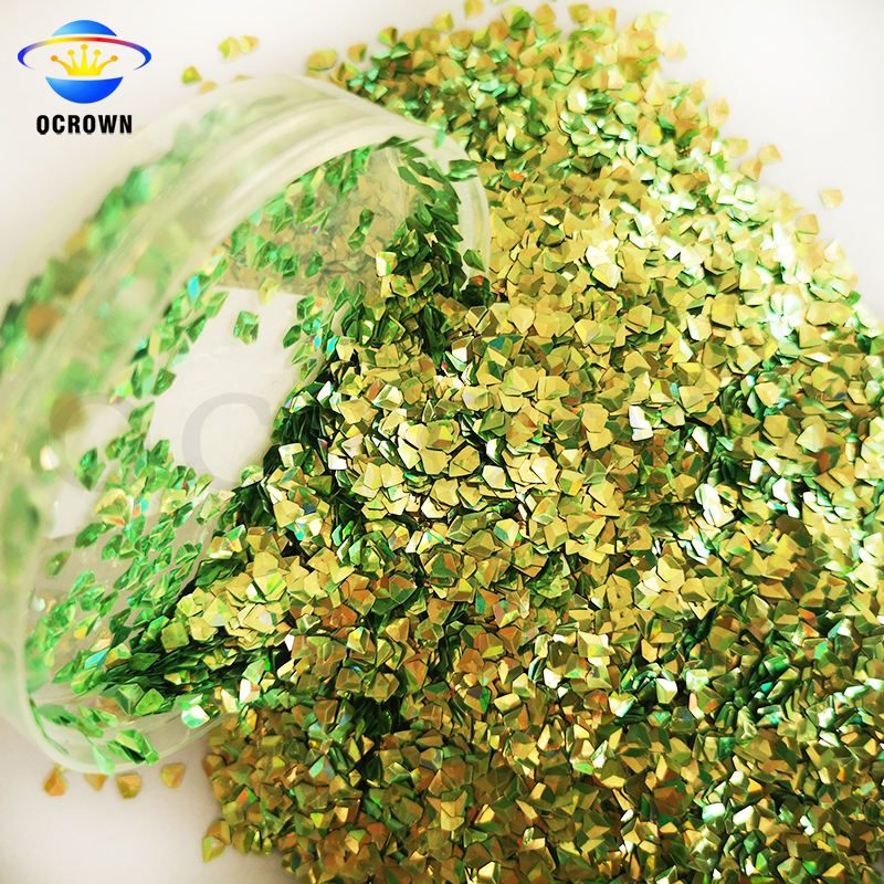 3D เพชรรูปร่างแวววาวเล็บสีรุ้งเลื่อมฝุ่นเล็บเกล็ดสำหรับแต่งหน้าอายแชโดว์โลโก้ที่กำหนดเองเครื่องสำอางร่างกายตาใบหน้า