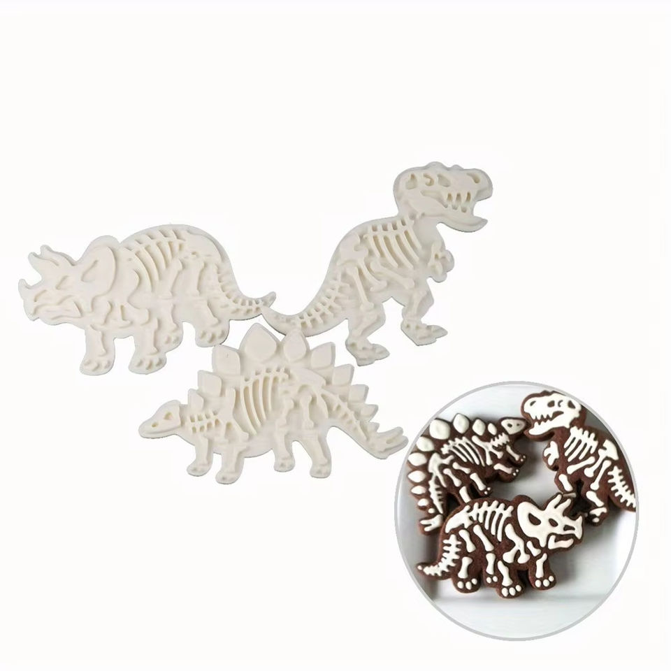 แม่พิมพ์แม่พิมพ์ตัดคุกกี้ไดโนเสาร์บิสกิตแบบลายนูนแม่พิมพ์อบขนมหวานเค้กฟองดอง3ชิ้น3D