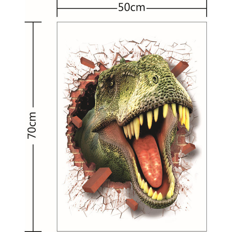 สติ๊กเกอร์ติดผนังไดโนเสาร์ 3 มิติ 50x70 ซม. สติ๊กเกอร์กราฟฟิตีพีวีซีสำหรับห้องเด็กดีไซน์ทันสมัย