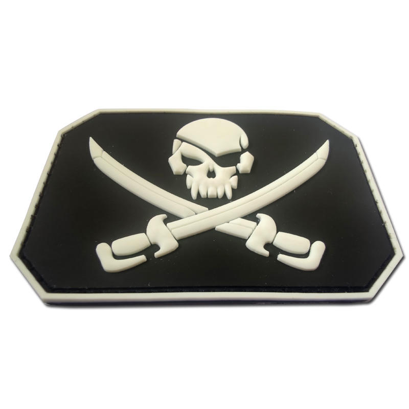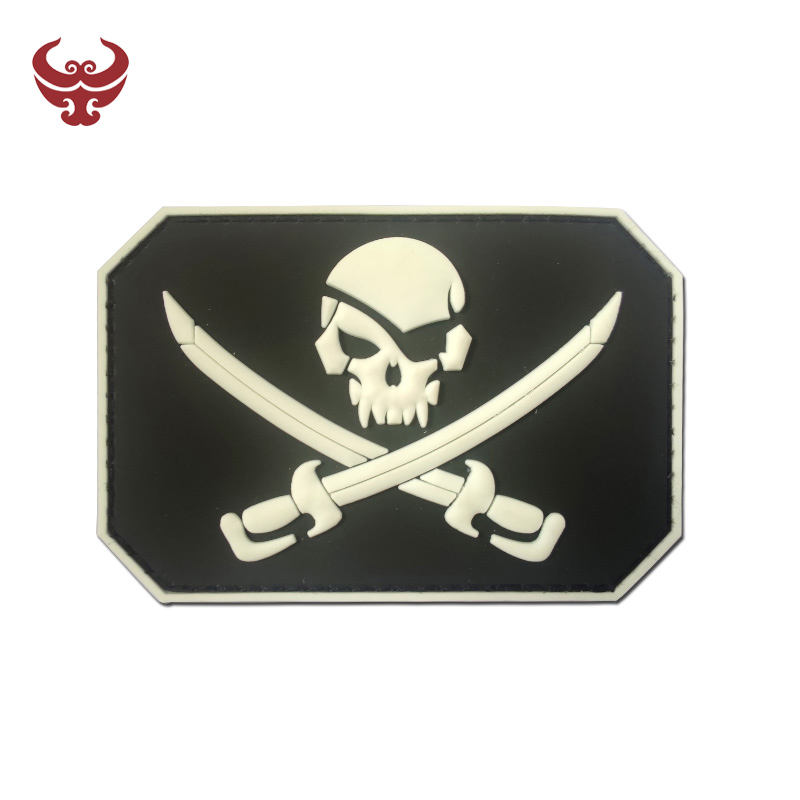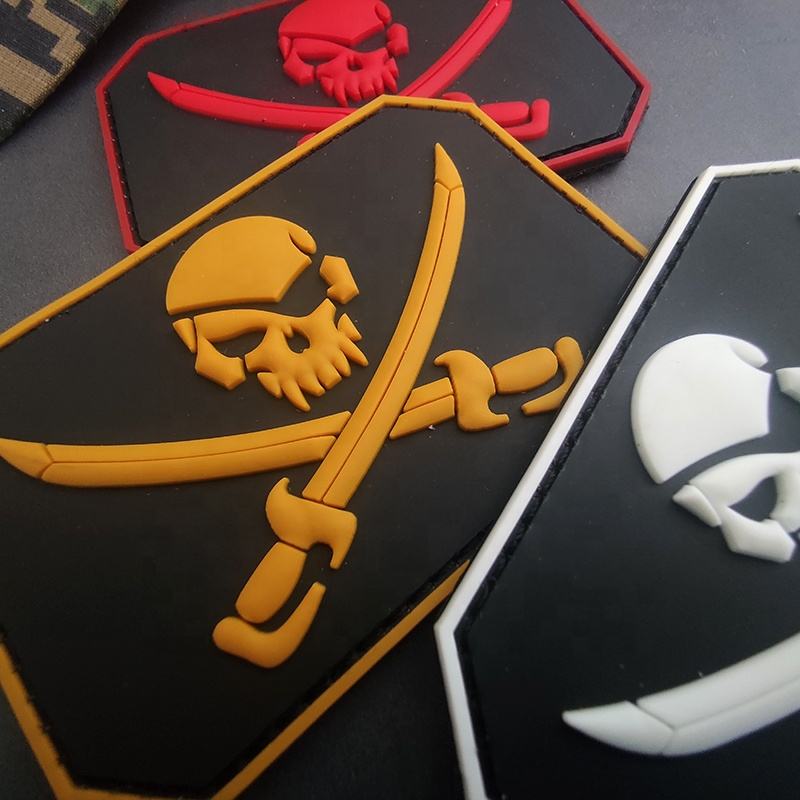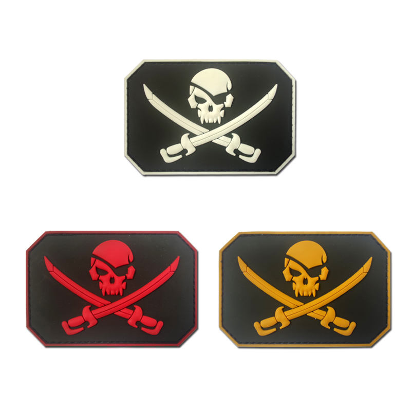 แผ่นแปะยางพีวีซีแบบนิ่มรูปหัวกะโหลก 3 มิติ ใบมีดคู่ เป็นมิตรกับสิ่งแวดล้อม พร้อมตะขอเกี่ยว โลโก้สั่งทำได้สำหรับเสื้อผ้า