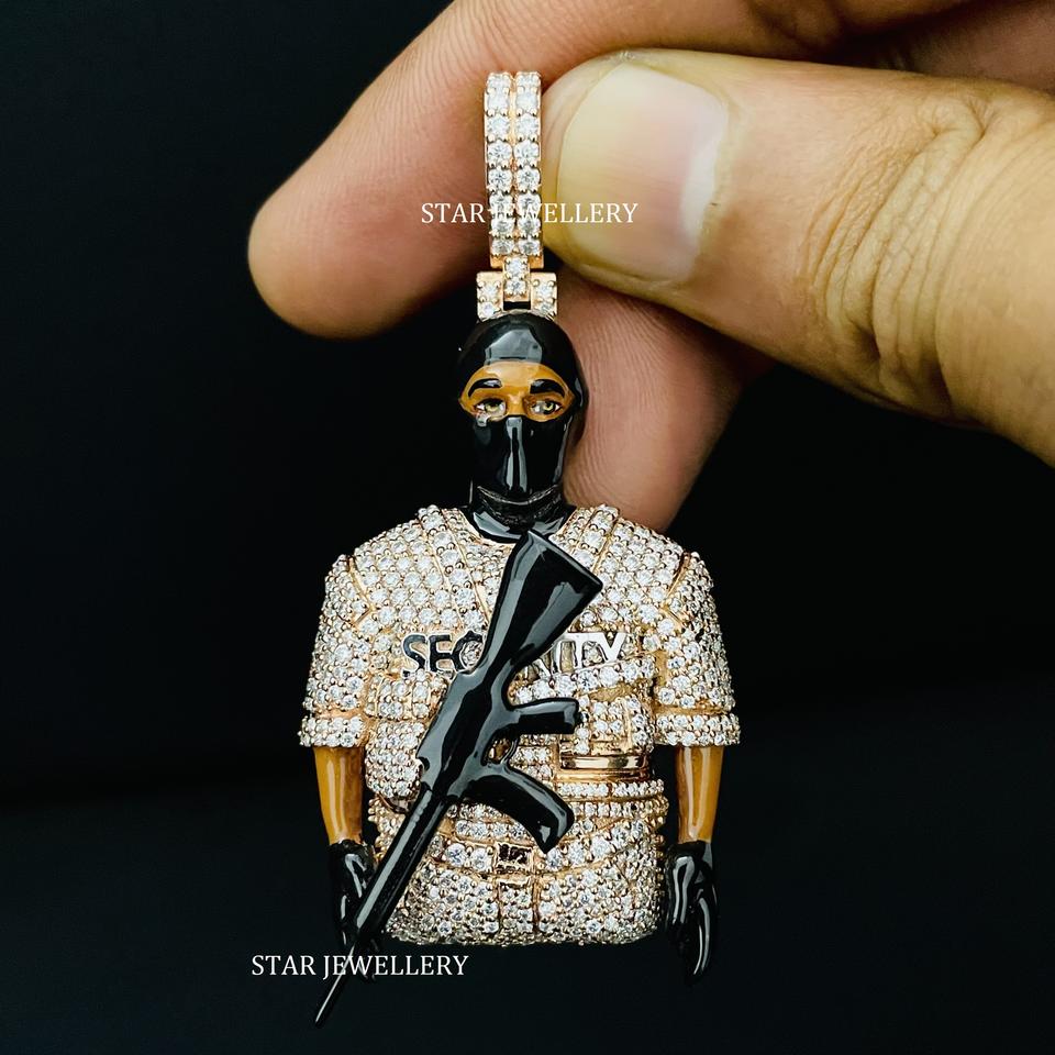 จี้เคลือบ3D VVS Moissanite D สีเงิน925ฮิปฮอปโมอิสซาไนท์จี้รูปหน้า3D แบบกำหนดเอง