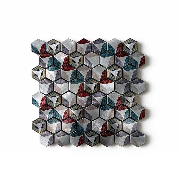 กระเบื้องโมเสคแก้วคริสตัลทรงสี่เหลี่ยมจัตุรัสอะลูมิเนียมสีทองแดงแบบ 3 มิติ ดีไซน์ทันสมัย ทนน้ำเคลือบเงา หนา 10 มม. สำหรับห้องครัว