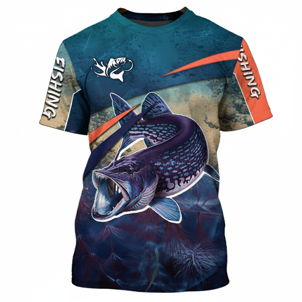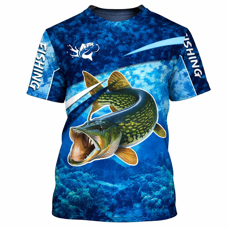 เสื้อยืดแขนสั้นพิมพ์ลายตกปลา 3 มิติ เสื้อเจอร์ซีย์ตกปลา เสื้อผ้าสำหรับตกปลา เสื้อผ้ากลางแจ้ง เสื้อเจอร์ซีย์แขนสั้น