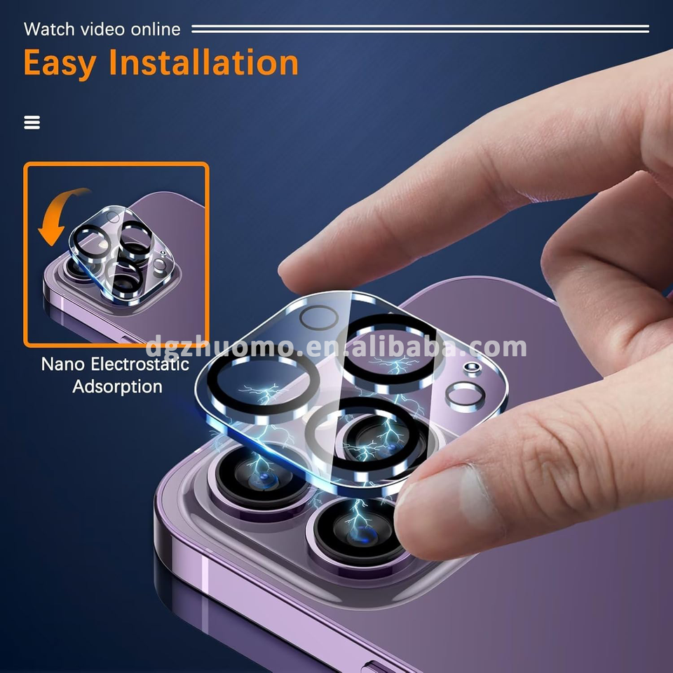 3D ครอบคลุมทุกด้าน กระจกนิรภัยใสพิเศษ 9H เกรด AAA บางเฉียบ ป้องกันการระเบิด กันน้ำ ตัวป้องกันเลนส์กล้อง 15/16 โปร