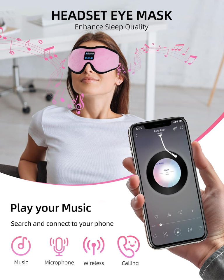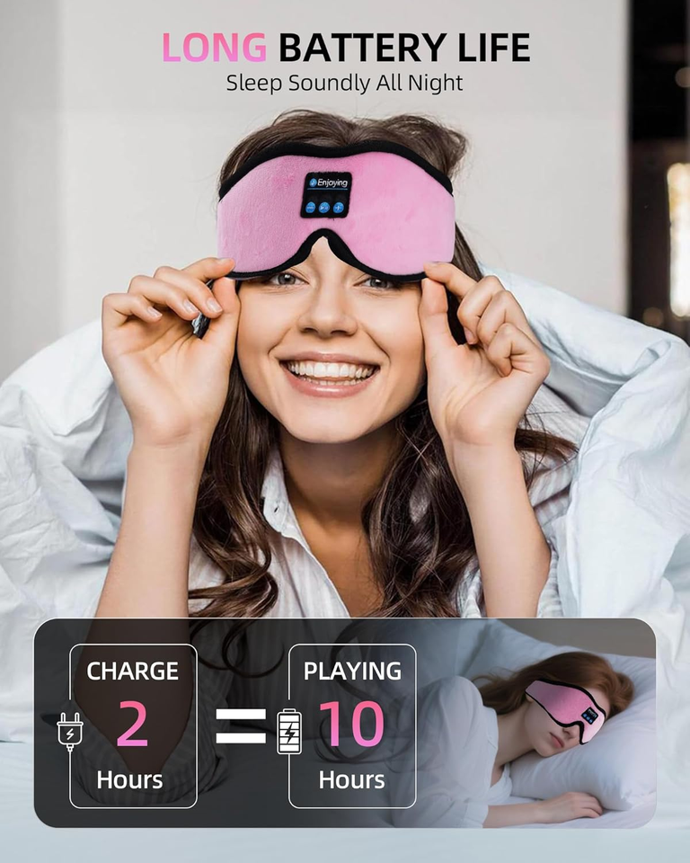 หน้ากากปิดตาแบบ 3 มิติ ป้องกันแสงได้เต็มที่ พร้อมหูฟังในตัว สายรัดยางยืดปรับได้ และไมโครโฟนสำหรับฟังเพลงขณะนอนหลับ