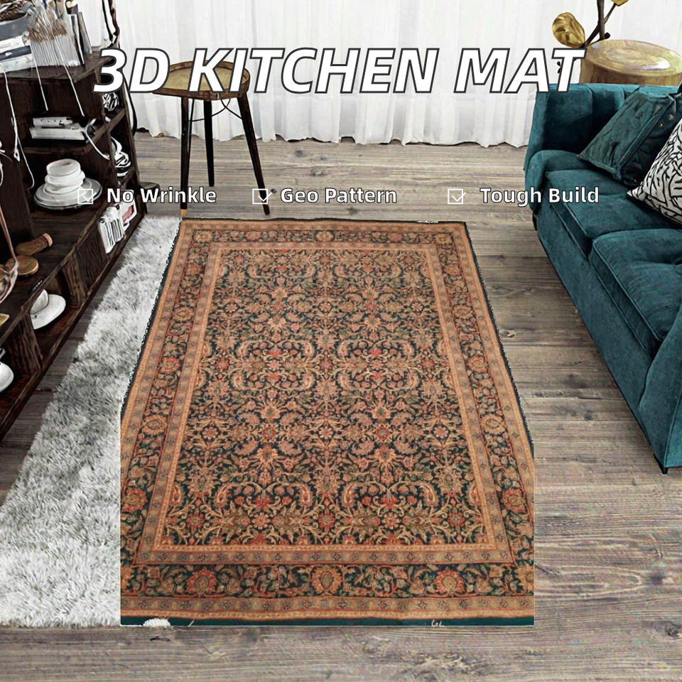 พรมปูพื้นทรงสี่เหลี่ยมผืนผ้าหนา3มม. กันรอยยับทนต่อรอย100% ลายเรขาคณิตแบบ3D