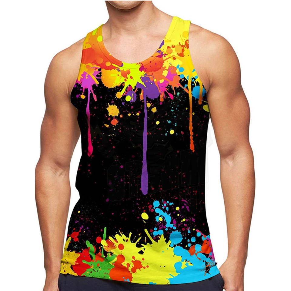 เสื้อกล้ามพิมพ์ลายกราฟฟิตี 3 มิติสำหรับผู้ชาย เสื้อยืดแขนกุดสุดเท่สไตล์ Y2K เสื้อผ้าออกกำลังกายแห้งเร็ว เสื้อกีฬาบาสเก็ตบอลแนวสตรีท