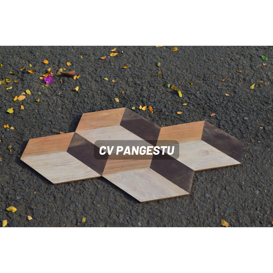 แผ่นผนังไม้สักหกเหลี่ยม 3 มิติ แผ่นไม้เนื้อแข็งตกแต่งผนังภายในลายเรขาคณิต