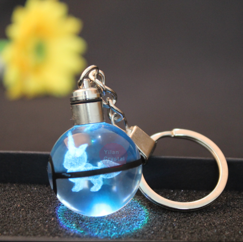 พวงกุญแจลูกบอลคริสตัล 3 มิติ K9 แบบ LED รูปทรงโปเกบอล พร้อมไฟเปลี่ยนสี ดีไซน์ทนทาน ขนาดปรับแต่งได้ ของขวัญสำหรับเด็ก