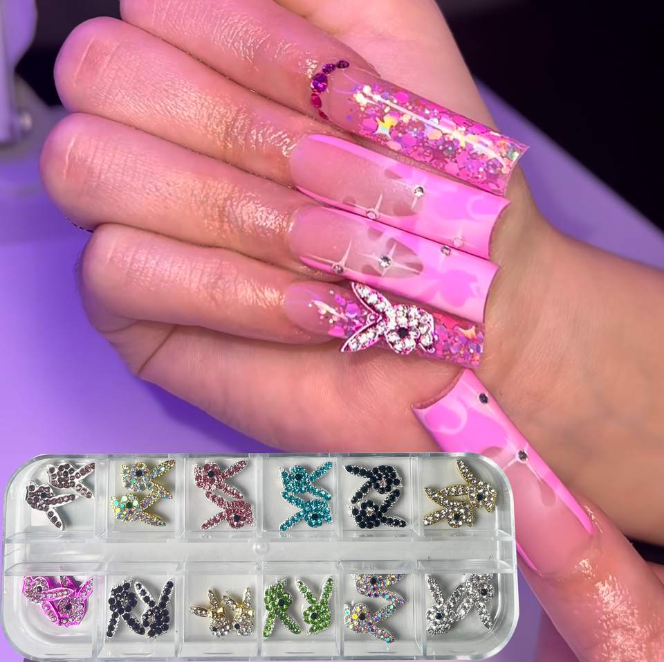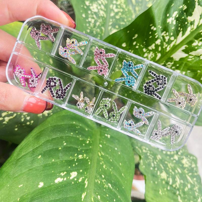 3D เล็บกระต่ายสุดน่ารักสำหรับตกแต่งเล็บคริสตัล Playboys กระต่ายทำเล็บประดับโลหะอัลลอยแบบทำมือแบบทำมือ