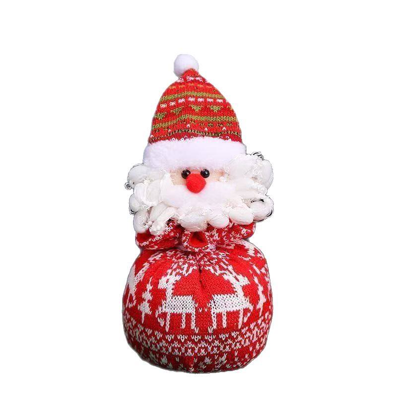 ถุงของขวัญคริสต์มาสแบบถักนิตติ้ง 3 มิติ ดีไซน์ตุ๊กตาขนนุ่ม สีแดง พร้อมเชือกผูก สำหรับใส่ขนม ของขวัญในเทศกาลวันหยุด ตกแต่งงานปาร์ตี้