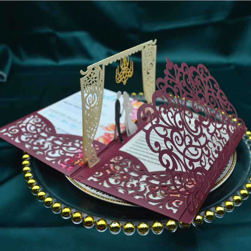 การ์ดอวยพรแบบทำมือลายลูกไม้ตัดด้วยเลเซอร์ของตกแต่งแบบป๊อปอัพสำหรับเจ้าสาวและเจ้าบ่าว3D