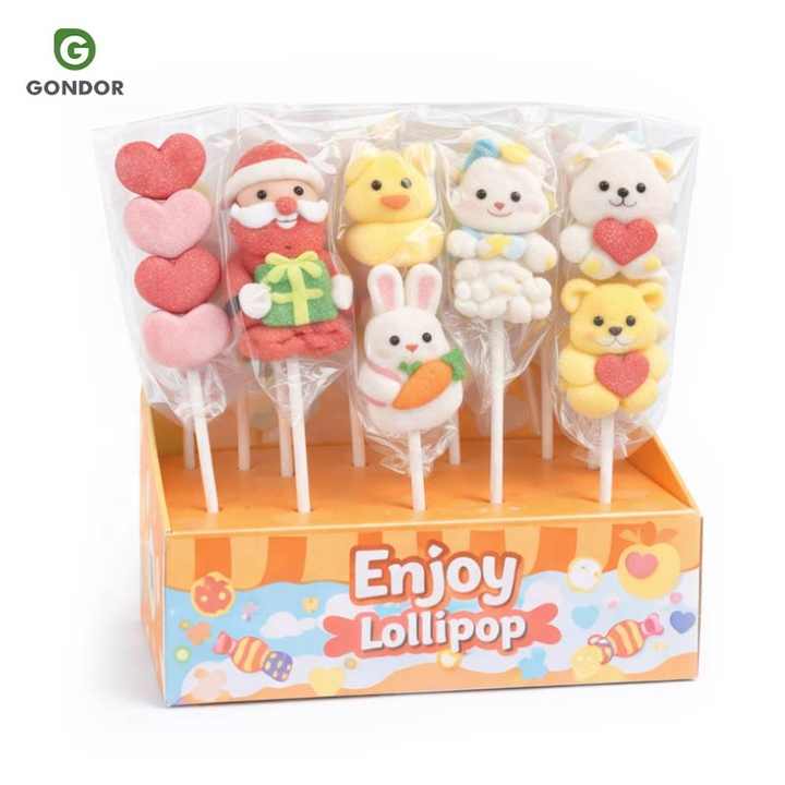 ลูกอมมาร์ชเมลโล่รูปเป็ด 3 มิติ แบบกลม ลายการ์ตูน คริสต์มาส รสเปรี้ยว ขนมหวานแท่งมาร์ชเมลโล่ มัลวาวิสโก