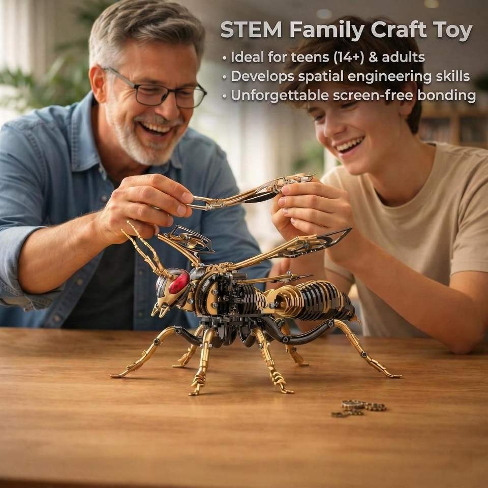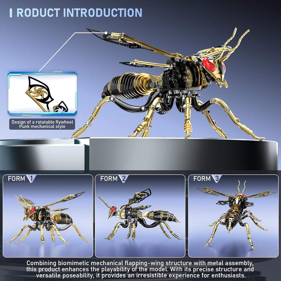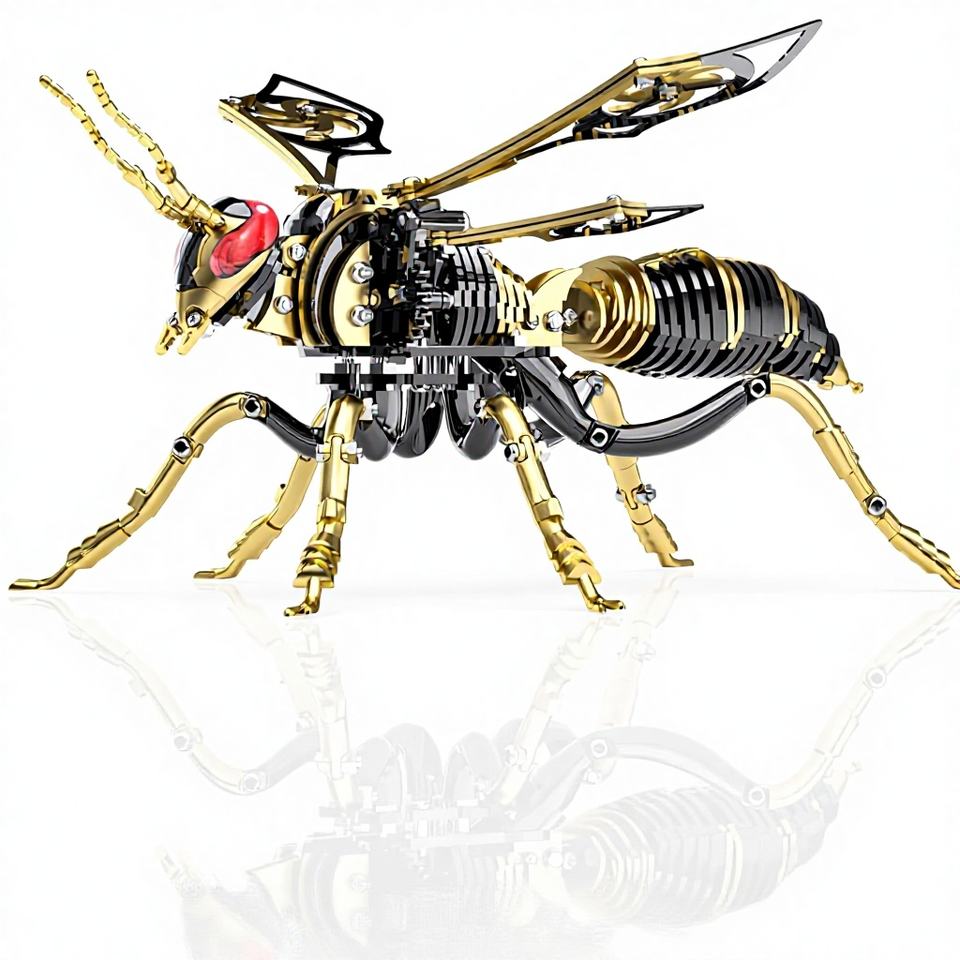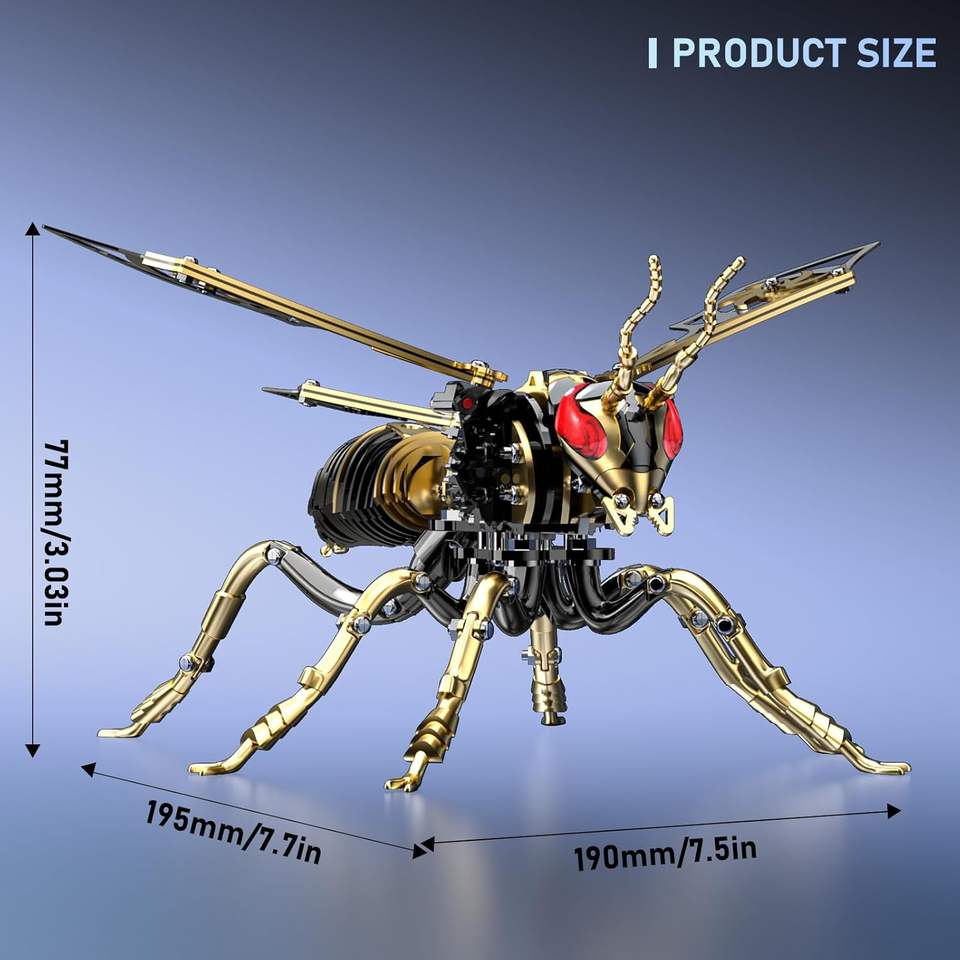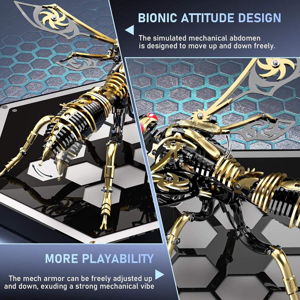 ตัวต่อโลหะ 3 มิติ รูปผึ้ง: ชุดประกอบแมลงวันผึ้งแบบกลไก ทำจากสแตนเลสสตีลชุบทอง 18K สำหรับตกแต่งโต๊ะทำงานสำหรับผู้ใหญ่ (สีดำ-ทอง)