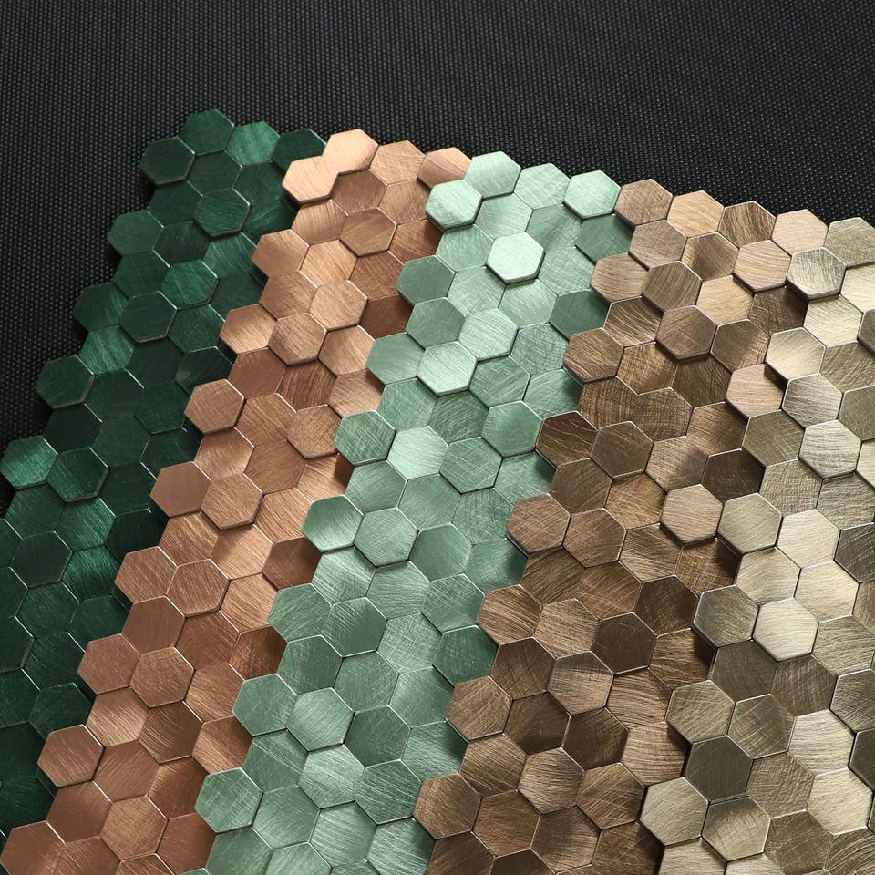 กระเบื้องโมเสคสำหรับห้องครัวแบบลอกและติดทำจากอลูมิเนียมทรงหกเหลี่ยมขนาดเล็กมี3D