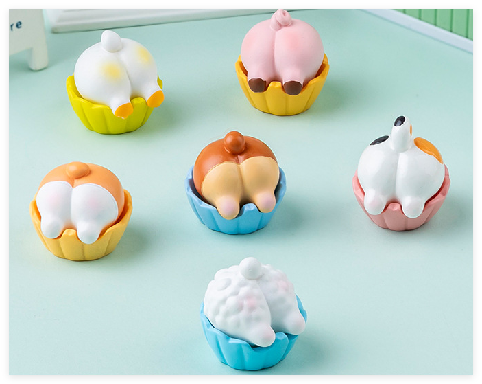 3D คอร์กี้หมีขนแกะก้นหมูเป็ดหางสัตว์ถ้วยเค้กตั้งโต๊ะรูปปั้นเรซิ่นตกแต่งของเล่น3D สำหรับเด็ก