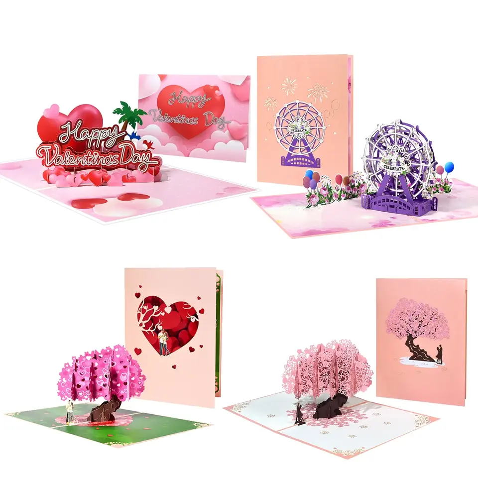 การ์ดป๊อปอัพ 3 มิติ สำหรับงานแต่งงาน วันครบรอบ วันเกิด-ของขวัญวันวาเลนไทน์สำหรับงานเฉลิมฉลอง