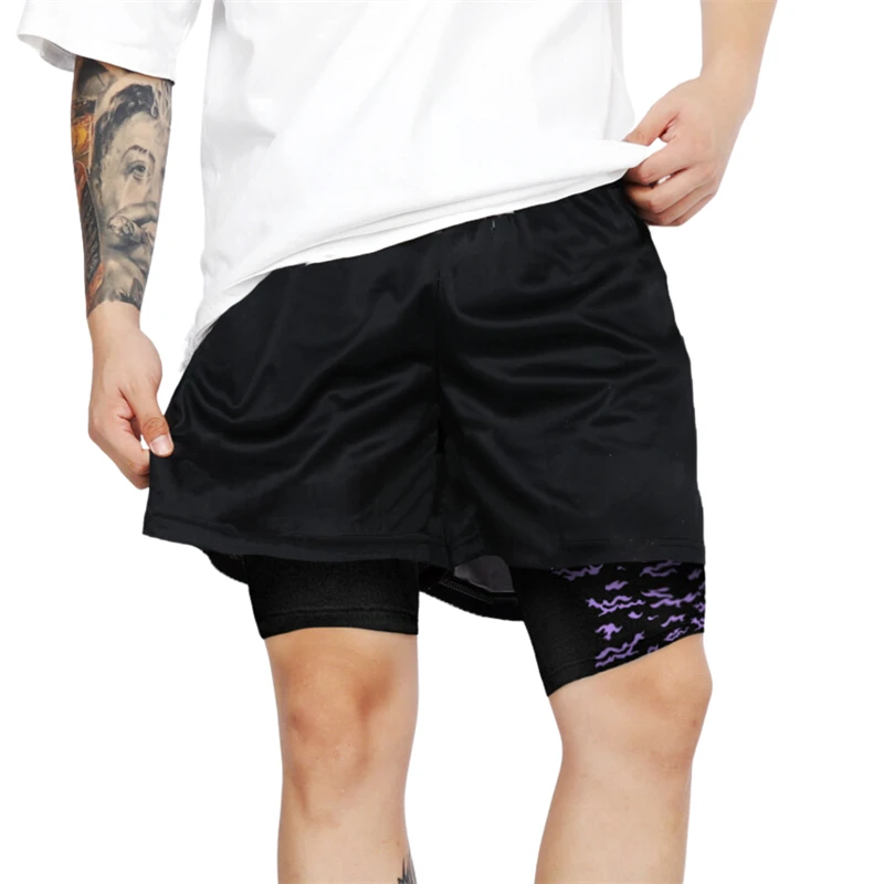 กางเกงขาสั้นกีฬา 3 มิติ 2 in 1 สำหรับผู้ชาย ออกกำลังกาย วิ่ง ระบายอากาศ แห้งเร็ว กางเกงขาสั้นลำลองฤดูร้อน มีกระเป๋าข้าง