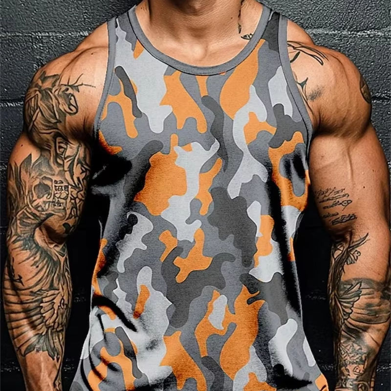 เสื้อยืดแขนกุดพิมพ์ลายพรางลายพรางสำหรับผู้ชายเสื้อกั๊กออกกำลังกายเล่นกีฬาใหม่ฤดูร้อนเสื้อผ้าลำลองใส่ไปยิมสำหรับผู้ชายเสื้อผ้าแห้งเร็ว